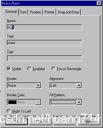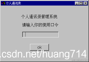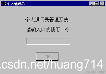 为了使窗口更美观一点,可以对已放入窗口中的控件调整位置和改变一些特性,单击第一个静态文本框选中它,然后放到合适的地方,在上面单击右键,在弹出的菜单中选择PROPERTIES菜单项,系统弹出一个对话框用来设置这个控件的属性(图2-24),NAME栏显示的是控件的名字,这个名字是用在以后编写的脚本中,系统已经设置了一个缺省的名字,这里不作修改,接下来的TEXT一栏是用来设置显示在静态文本框中的文本,这里把它改为“个人通讯录管理系统”,设好后单击OK按钮,用类似的方法把调整另外一个静态编辑框的位置,并把上面的文字改为“请输入你的使用口令:”,然后激活单行编辑框,调整好它的位置后把鼠标放在它的右边框上等鼠标变成水平双箭头形状的时候单击并拖动鼠标,把编辑框拉长一些;最后调整命令按钮的位置并把上面的标题修改为“OK”。用鼠标右键单击窗口中没有控件的空白区域,然后在弹出的菜单中选择PROPERTIES菜单项,在弹出的对话框中把TITLE一栏改为“个人通讯录”,然后单击“OK”按钮关闭对话框。