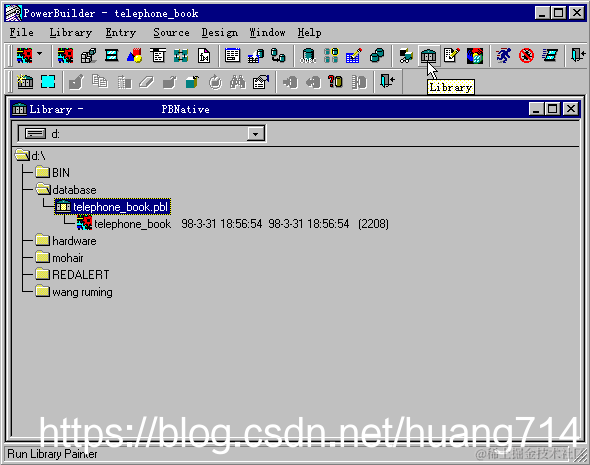 5)单击工具条上的LIBRARY画板按钮,可以发现创建的应用对象TELEPHONE-BOOK出现在我们刚刚创建的对象库TELEPHONE-BOOK.PBL中(图2-21)。