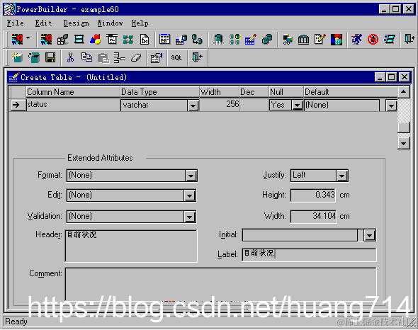 单击OPEN TABLE对话框中的NEW按钮,在弹出的CREATE TABLE对话框中就可以定义表的各种信息,因为在前面我们介绍过如何创建一个表,这里就不再举例子,只说明一下对话框中所有栏目的含义,以便于你在定义表时知道该如何使用这些选项。在对话框的上部分是用来定义表的基本信息,其中COLUMN NAME用来定义字段名,DATA TYPE定义字段的数据类型,WIDTH定义字段的数据宽度,DEC用来定义当字段为数值型时的小数位数,NULL栏用来定义这个字段是否可以取空值,也就是是否可以不取值,DEFAULT栏用来定义这个字段的缺省属性,一般情况下就设为NONE,在对话框的下部是用来定义字段的扩展属性,其中FORMAT栏用来定义字段的显示风格,EDIT用来定义字段的编辑风格,VALIDATION一栏用来定义字段值的有效性检查规则,JUSTIFY定义字段的对齐方式,分左对齐,右对齐,居中对齐三种方式。HEIGHT和WIDTH分别用来定义字段显示时字段显示的高度和宽度。INITIAL则是用来定义字段的初始值,也就是在我们创建一条新记录时系统会自动给这个字段赋的初值。HEADER和LABEL栏分别用来定义字段的题头和标签,它们一般用在显示数据的时候标明是哪一个字段的值,最后一项COMMENT栏是用来输入有关这个字段的辅助信息,以便于以后查看方便。要指出的是这里的有些项,比如EDIT,FORMAT等只能从下拉列表框中选择,如果没有合适的选项,就需要在定义好表之后再为相应的字段创建新的编辑风格,显示风格等。