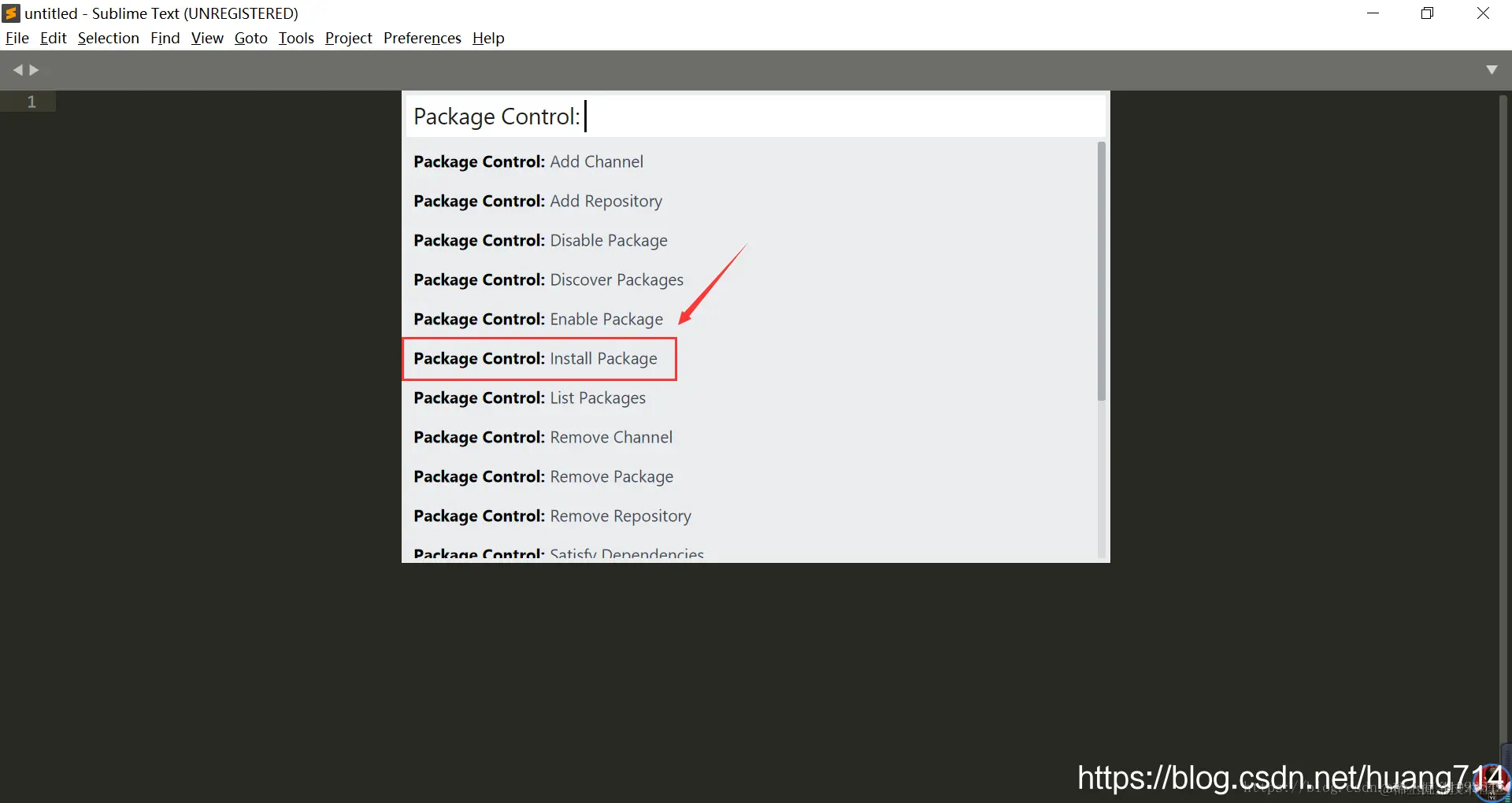 在preferences下点击package control,可以看到下面出现install package,点击之后弹出新的文本框,在文本框里输入我们想要安装的插件名称回车就可以安装了。