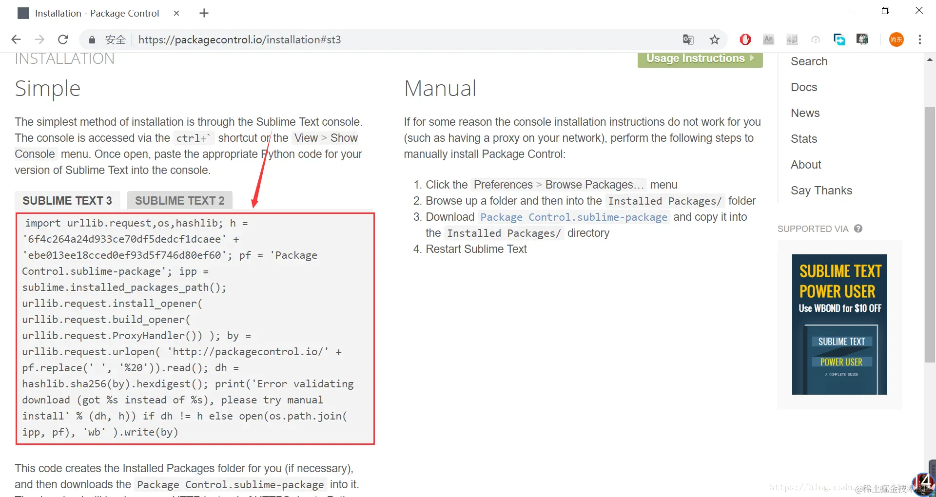 进入sublime text 3,在菜单栏中找到view –>show console,点击后底部出现控制栏。进入网站(packagecontrol.io/installatio… text 3下的代码到控制栏中,回车后底部会出现安装进度条,等待安装完成,重启sublime text3。