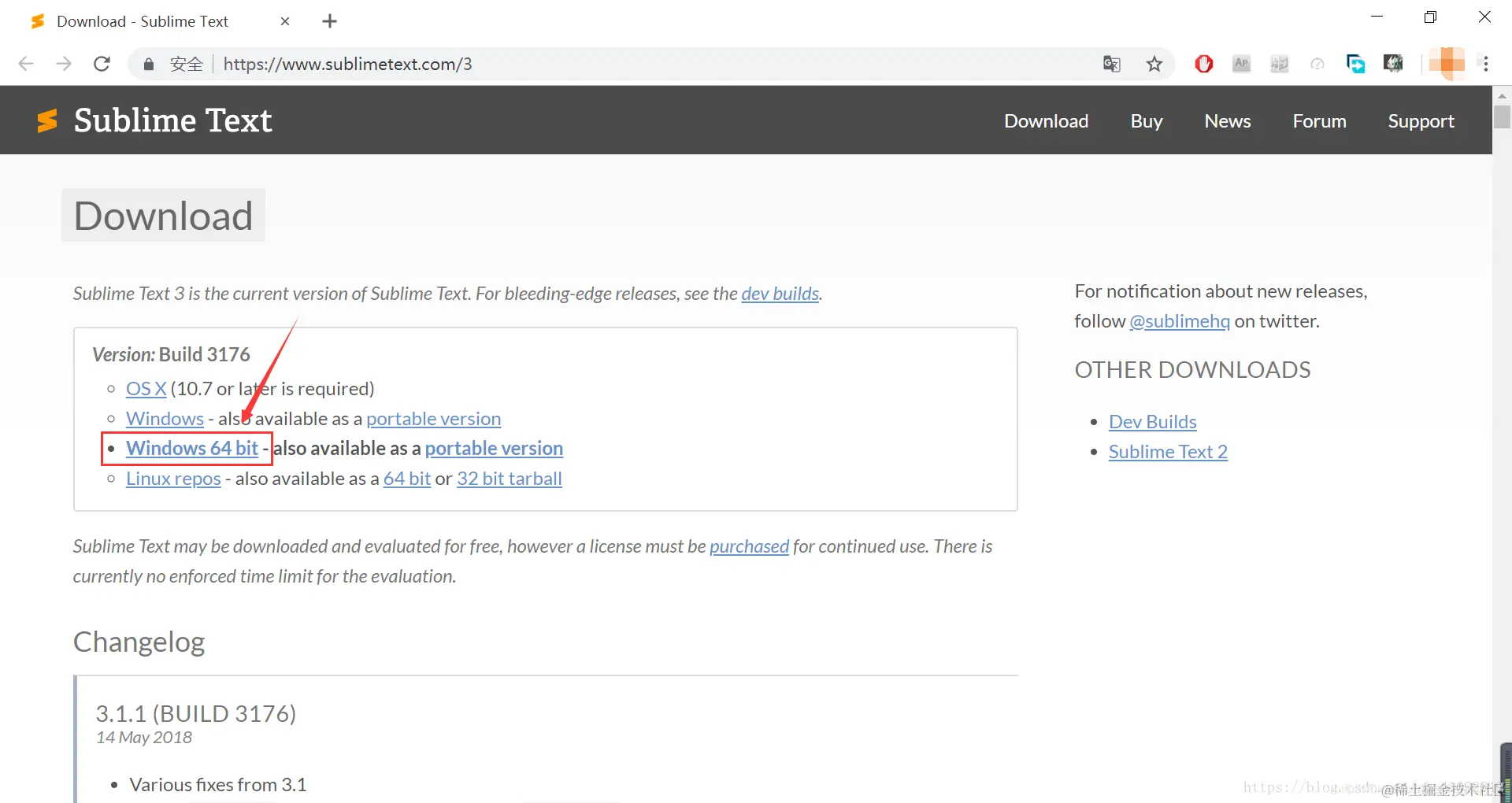 直接搜索sublime test 3,找到sublime text 3-download(网站https://www.sublimetext.com/3),选择windows对应版本(一般为64bit),点击下载。