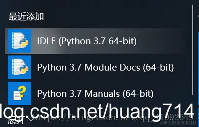 安装完成后,可以在开始栏里看到出现了python相关的若干文件,进入IDLE就可以进行编程。