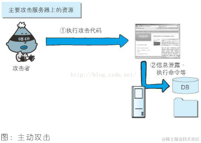 主动攻击(active attack)是指攻击者通过直接访问 Web 应用,把攻击代码传入的攻击模式。由于该模式是直接针对服务器上的资源进行攻击,因此攻击者需要能够访问到那些资源。主动攻击模式里具有代表性的攻击是 SQL 注入攻击和 OS 命令注入攻击。