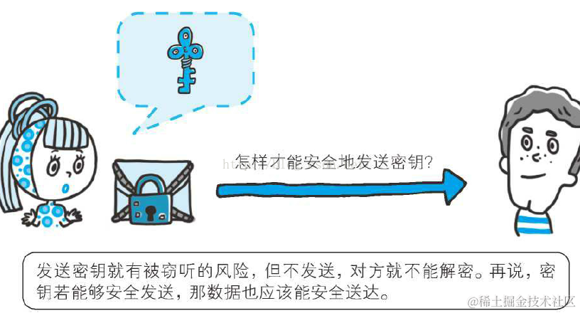 以共享密钥方式加密时必须将密钥也发给对方。可究竟怎样才能安全地转交?在互联网上转发密钥时,如果通信被监听那么密钥就可会落入攻击者之手,同时也就失去了加密的意义。另外还得设法安全地保管接收到的密钥。