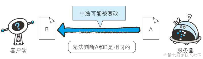 由于 HTTP 协议无法证明通信的报文完整性,因此,在请求或响应送出之后直到对方接收之前的这段时间内,即使请求或响应的内容遭到篡改,也没有办法获悉。