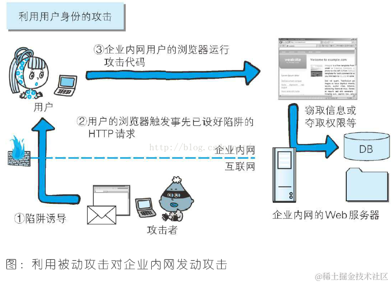 利用被动攻击,可发起对原本从互联网上无法直接访问的企业内网等网络的攻击。只要用户踏入攻击者预先设好的陷阱,在用户能够访问到的网络范围内,即使是企业内网也同样会受到攻击。