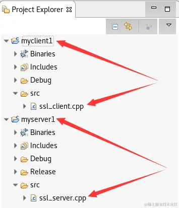 将前边生成的ca证书(ca.crt)、客户端证书(client.crt)、客户端未加密私钥文件()复制到myclient1项目的Debug目录下