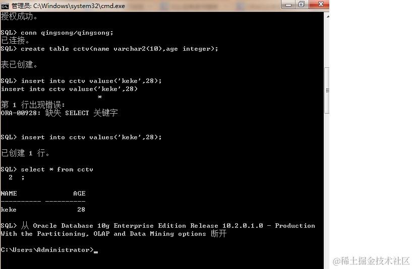 oracle 创建用户,授权用户,创建表,查询表