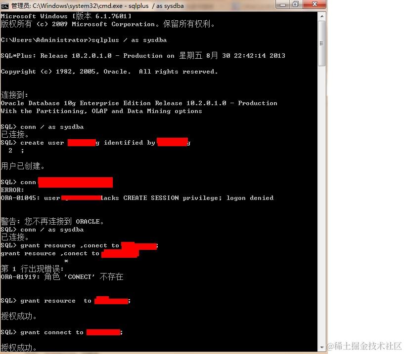 第二步:连接超级管理员sysdba,语句sqlplus / as sysdba;