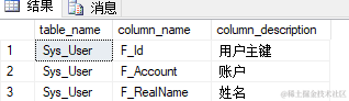 d.name='Sys_User' --如果只查询指定表,加上此where条件,tablename是要查询的表名;去除where条件查询所有的表信息