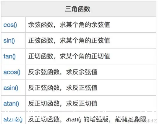 主要有三角函数、幂函数(exp())、对数函数(log())、取绝对值函数(fabs())、取整函数(ceil(), floor(), round())等。