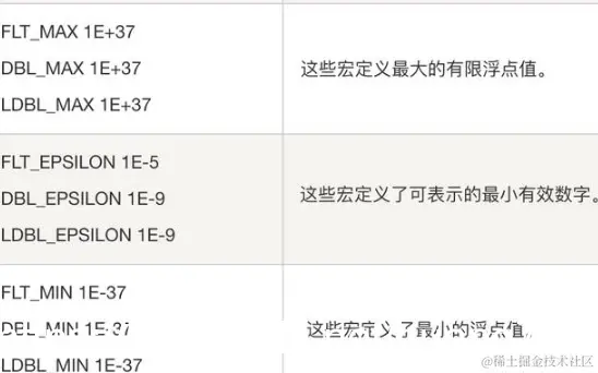 下面的值是特定实现的,且是通过 #define 指令来定义的。其中,FLT 是指类型 float,DBL 是指类型 double,LDBL 是指类型 long double。