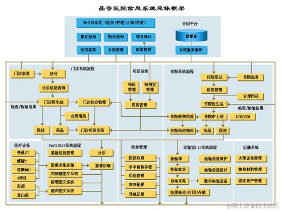一、定义说明 医院信息系统(Hospital Information System, HIS),利用电子计算机和通讯设备,为医院所属各部门提供病人诊疗信息和行政管理信息的收集、存储、处理、提取和数据交换的能力,并满足所有授权用户的功能需求。 实验室信息管理系统(Laboratory Information Management System, LIS),是专为医院检验科设计的一套信息管理系统,能将实验仪器与计算机组成网络,使病人样品登录、实验数据存取、报告审核、打印分发,实验数据统计分析等繁杂的操作过程实现了智能化、自动化和规范化管理。有助于提高实验室的整体管理水平,减少漏洞,提高检验质量。 医学影像存档与通讯系统(Picture archiving and communication systems, PACS),是近年来随着数字成像技术、计算机技术和网络技术的进步而迅速发展起来的、旨在全面解决医学图像的获取、显示、存贮、传送和管理的综合系统。 放射信息管理系统(Radioiogy information system, RIS),是优化医院放射科工作流程管理的软件系统,一个典型的流程包括登记预约、就诊、产生影像、出片、报告、审核、发片等环节。 电子病历 (Electronic Medical Record, EMR),是指将传统的纸病历完全电子化,并提供电子贮存、查询、统计、数据交换等管理模式,它是信息技术和网络技术在医疗领域应用的必然产物,是医院计算机网络化管理的必然趋势,目前改领域研究已成为一个新的研究应用热点。 二、概述 医院信息系统(HIS)是一个庞大而复杂的现代化信息管理系统,它包含财务、人事、住院、门诊、挂号、医技、收费、分诊、药品管理等多个子系统,经过多年的发展,HIS系统被赋予更多的功能:随着医院内部业务流程的不断梳理和整合,HIS与 LIS,PACS,RIS,EMR等外围模块不断融合;随着卫生信息化的内涵与外延不断扩展,HIS与社保,医保,甚至银行系统的业务及数据交互越来越频繁。HIS系统已成为医疗行业业务驱动,流程整合与服务能力提升的核心引擎系统。 1. 建设目标v 以病人为中心,以电子病历为核心,以全面集成为手段,提高医院管理水平和经营效益为目标,打造先进的、全面的现代化的数字医院。数字化医院建设是建立全面的管理信息系统和临床信息系统,用最新的最先进的IT技术对全院的信息资源(人,财,物,医疗信息)进行全面的数字化,全面的优化和整合医院内部的资源以及医院外部全社会的信息资源为医院临床、管理服务,运用所有的信息资源为患者提供先进的、便捷的、人性化的医疗服务;v 人性化:以人为本,以病人为中心的原则,在系统的每个细节都应该体现人文关怀主义,考虑如何更加的方便患者,更加方便业务人员,更加的人性化。v 集成化:医院信息系统建设将有众多不同的系统组建而成,并形成有机的统一整体,规避医疗信息孤岛。v 智能化:通过系统的智能处理,减少人工环节,增强自动化的程度,增加辅助支持的功能。v 无纸化:通过电子处方,电子病历,电子申请单,电子报告等的应用逐步走向无纸化。v 无胶片化:通过实施医学影像系统,建立放射科数字阅片中心和诊断工作站,临床中心数字阅片室,医生影像浏览工作站,全院的数字阅片中心,会诊中心,教学中心等实现全院无胶片化临床模式和管理模式。v 无线网络化:通过建立无线网络,使用笔记本,平板电脑,PDA,无线病情跟踪器等无线设备实现医生护士查房,库房管理,病人病情跟踪等等,使一些业务不受空间的限制,无处不在。 2. 晶奇HIS系统特点v 基于一体化公共基础数据平台设计,给医务工作者建立了完整的工作平台。v 实现了核算、临床、决策、服务信息一体化。v 实现了LIS、PACS、RIS、EMR等系统的一体化。v 全面引入临床路径管理。v 支持医学研究和临床质量控制。v 一体化设计,简化了系统软、硬件结构,降低了系统开发、实施和维护成本,提高了系统运行效率,便于升级。v 与区域医疗卫生信息系统无缝融合。 三、总体建设思路1. 以病人为中心,以医疗信息为主线。v 采用就诊卡技术,简化病人就医流程,方便医生和患者;其PACS系统和LIS系统,将影像和化验结果与病人的基本信息相结合,在医生工作站上可以及时、准确地得到病人的各种生命指标。v 系统的设计思想是:通过临床信息的记录将各种医疗信息整合,并在此基础上生成费用的信息积累,直至在医疗方面形成以医、教、研为核心的临床信息系统。 2. 数据为管理服务v 系统以严格的权限控制机制,使信息和数据安全可靠,以工作角色确定每个人的工作权限;采用统一的药品管理方式,药品的采购、入库、出库、调价、盘点控制在药库和药房的管理中;处方、医嘱一体化,医生工作站开立处方和医嘱,采用统一的价格体系;院长查询系统,动态查询为院长提供决策依据。 四、系统总体框架 对该框架的功能分析说明如下: (一) 医院信息系统****1. 门诊管理系统、医剂管理系统v 基本构件:门急诊挂号、门急诊收费、医生工作站、门急诊电子病历。v 支持预约挂号、复诊挂号、医生限号挂号。v 支持自动收费、手工收费、退费等。v 支持医保、自费等各种类型病人就诊,并可灵活设置病人类型。v 支持在诊间由医生直接开电子处方和专人录入电子处方,支持多种录入方案。电子处方的使用能有效地控制药品的非正常消耗,实现门诊治疗单、化验单、检查单电子化,简化了病人的就诊程序,有效地解决了门急诊的“三长一短”现象。 (1) 门急诊挂号v 门诊挂号: