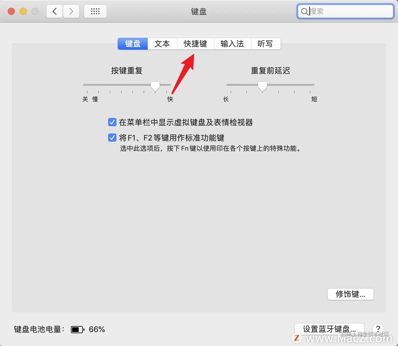 3.然后点按“快捷键”。