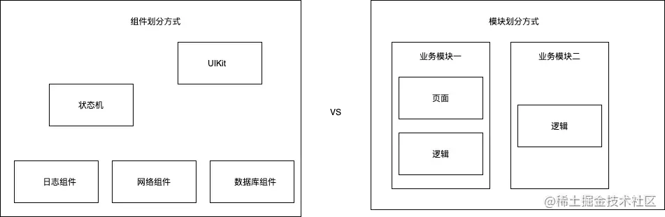 组件、模块其实是从不同的角度来划分一个app。 组件更多的是从自下而上的视角,按照技术实现的思维划分实现代码,并将这些代码组装成一个app。 模块更多的是从自上而下的视角,按照业务划分实现代码。