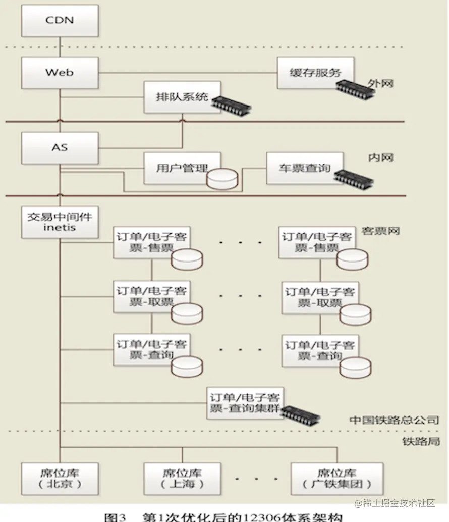 12306大名鼎鼎,无需多介绍。其中很多的场景和技术都可以给我们做一些很好的参考。但只找到了16年发表的论文,没有能了解到最新的架构部署。