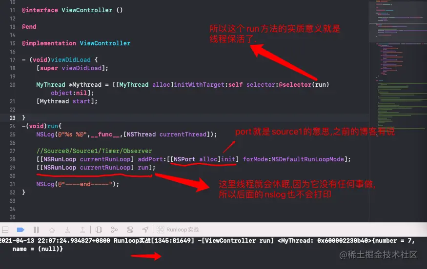 很清楚,上面的代码执行完NSThread就挂了.所以我们在开发中如果有需要经常在子线程干事情,是不是就是希望这个线程能一直不销毁,这样就避免了一直创建-销毁-创建-销毁.