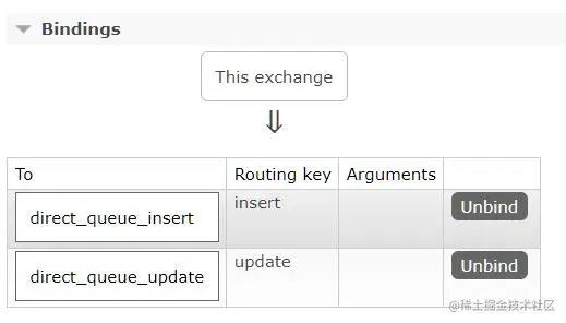 channel.queueBind(DIRECT_QUEUE_UPDATE, DIRECT_EXCHAGE, "update");