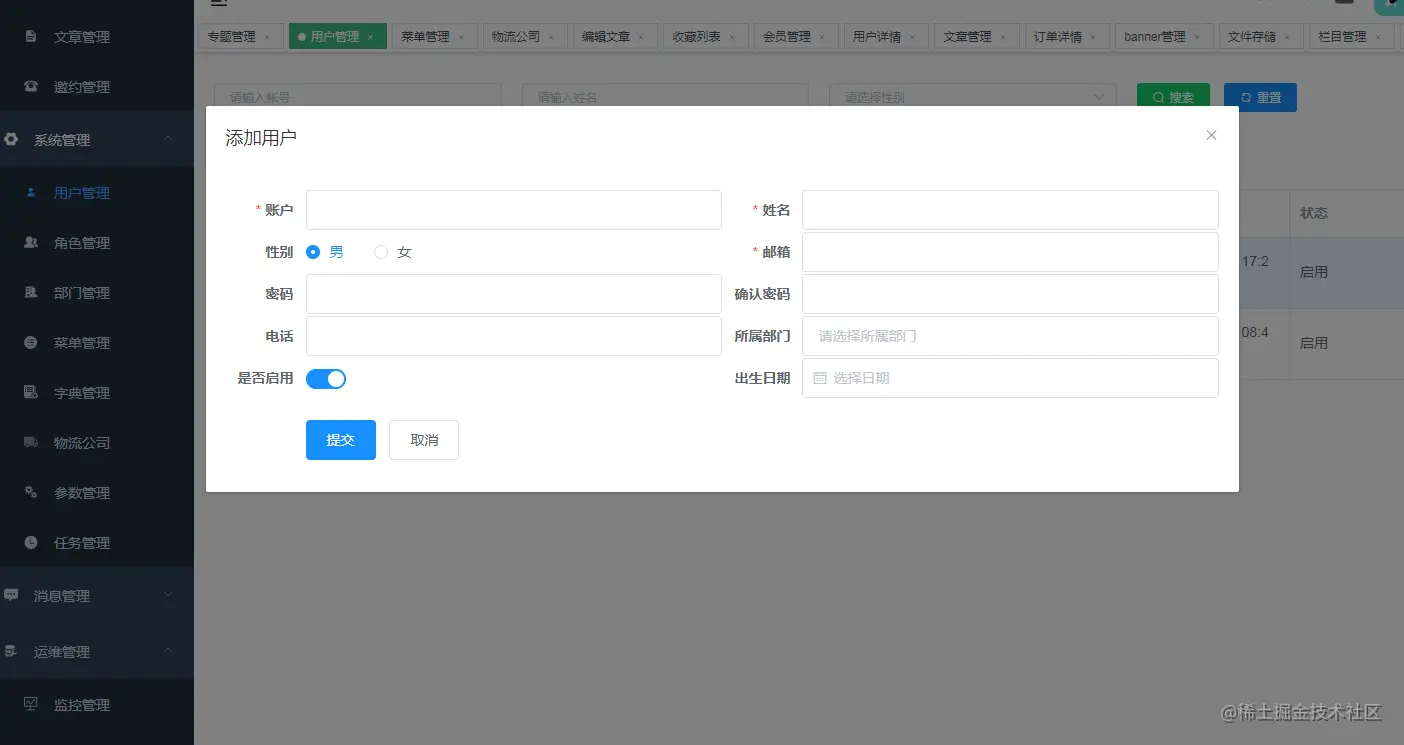 - 消息管理:配置消息模板,发送短信,邮件消息