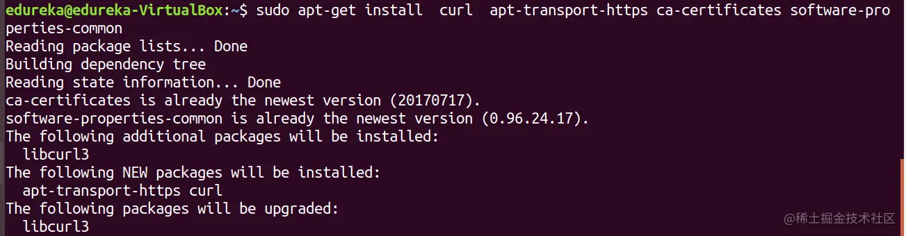 您的系统中需要安装某些软件包才能安装 Docker。执行以下命令以安装那些软件包。