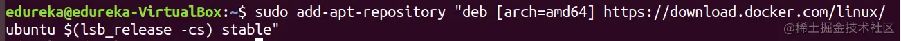sudo add-apt-repository "deb [arch=amd64] https://download.docker.com/linux/ubuntu $(lsb_release -cs) stable"