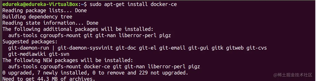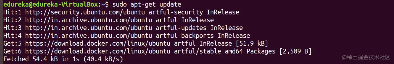 现在,您需要升级 apt 索引并安装 Docker 社区版,为此,请执行以下命令: