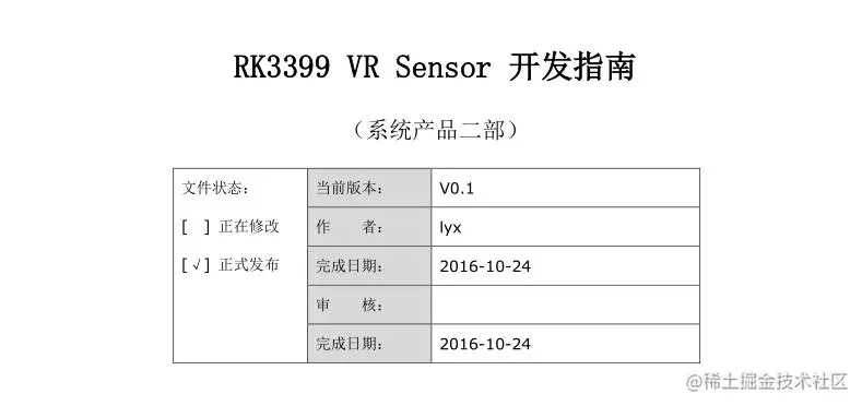 关于VR设备的sensor调试文档:《RK3399 VR Sensor 开发指南》