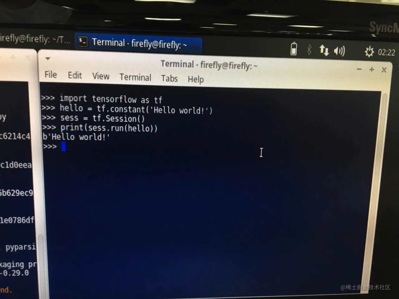 完成上面的步骤后,TensorFlow已经安装到Firefly-RK3399了,这个时通过简单的例程来测试程序输入\
