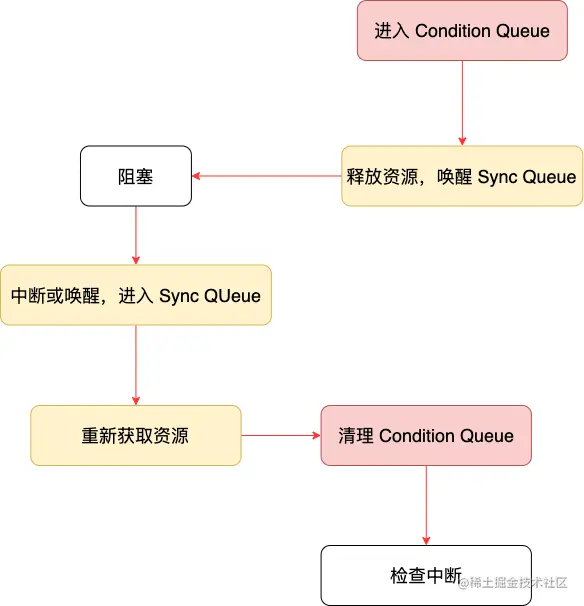对于阻塞,其实无非就是对资源、ConditionQueue 出入、SyncQueue 出入的一个编排,代表了对资源的争抢和放弃的流转。