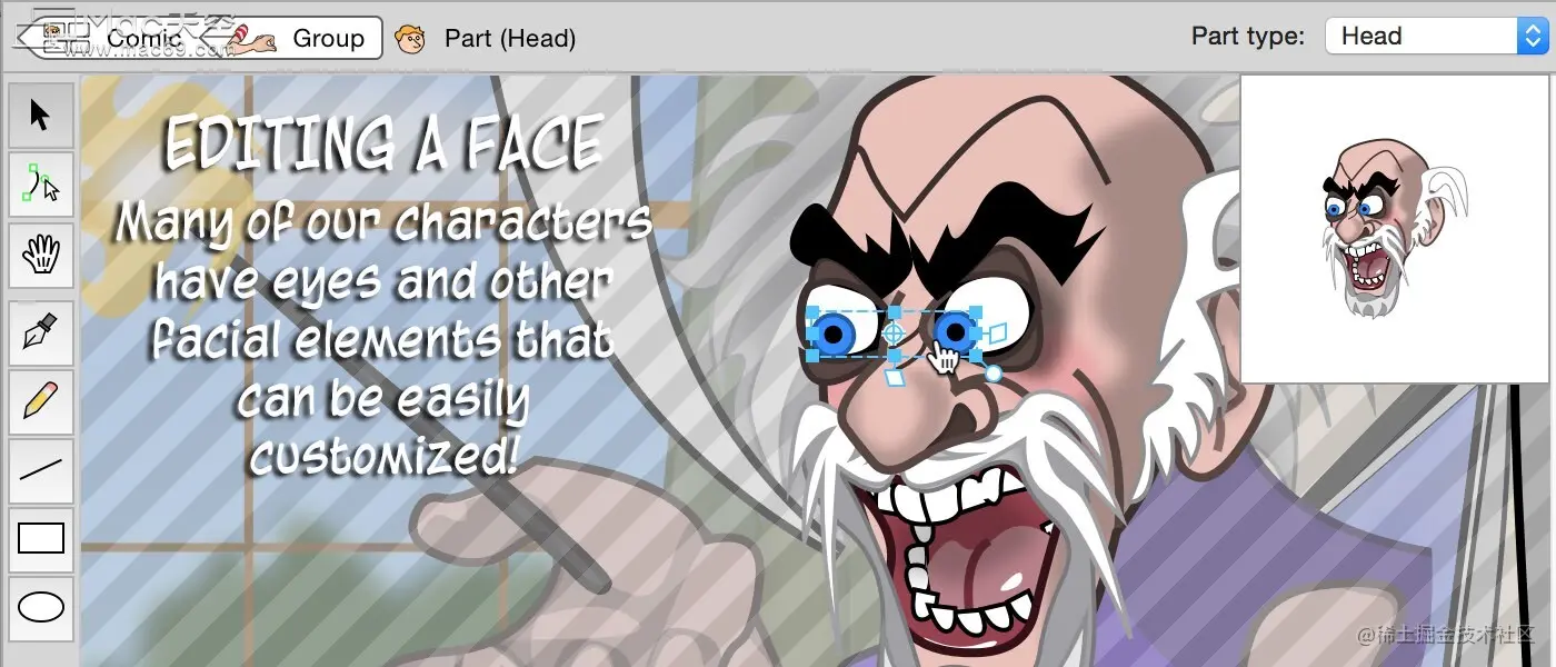 如果您有绘画自己的漫画的才能,那么Comic Strip Factory也将为您设计!创建自己的角色,既可以使用漫画,也可以与其他用户共享。Comic Strip Factory内置了复杂的矢量绘图编辑器,并且是专门为绘制漫画而设计的。它不会因您不需要且不会使用的一堆复杂功能而陷入困境。但是它具有您将始终使用的高级功能。就像将一条路径切入另一条路径一样。使用命名的颜色可以轻松更改角色的配色方案。模糊形状以产生阴影和高光,看起来就像是从专业喷枪中出来的一样。