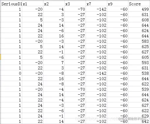 data = pd.read_csv('WoeData.csv') 应变量 Y=data['SeriousDlqin2yrs'] 自变量,剔除对因变量影响不明显的变量