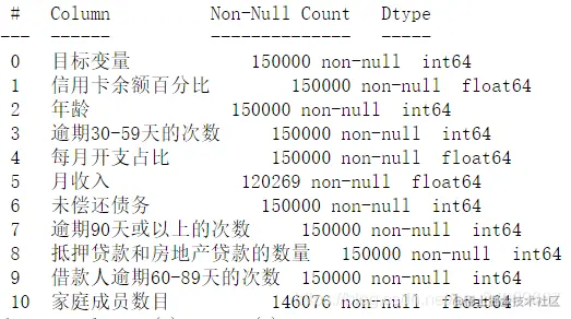 (150000, 11) 共有150000个数据,特征向量有11个。