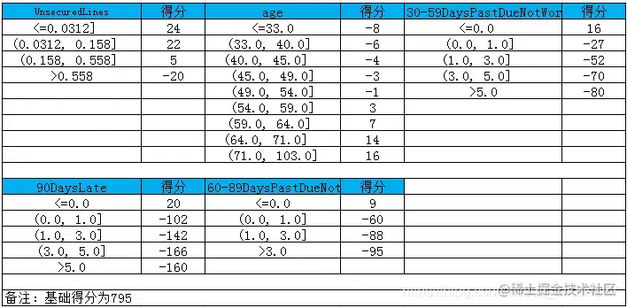 我们可以得到各部分的评分卡如图所示