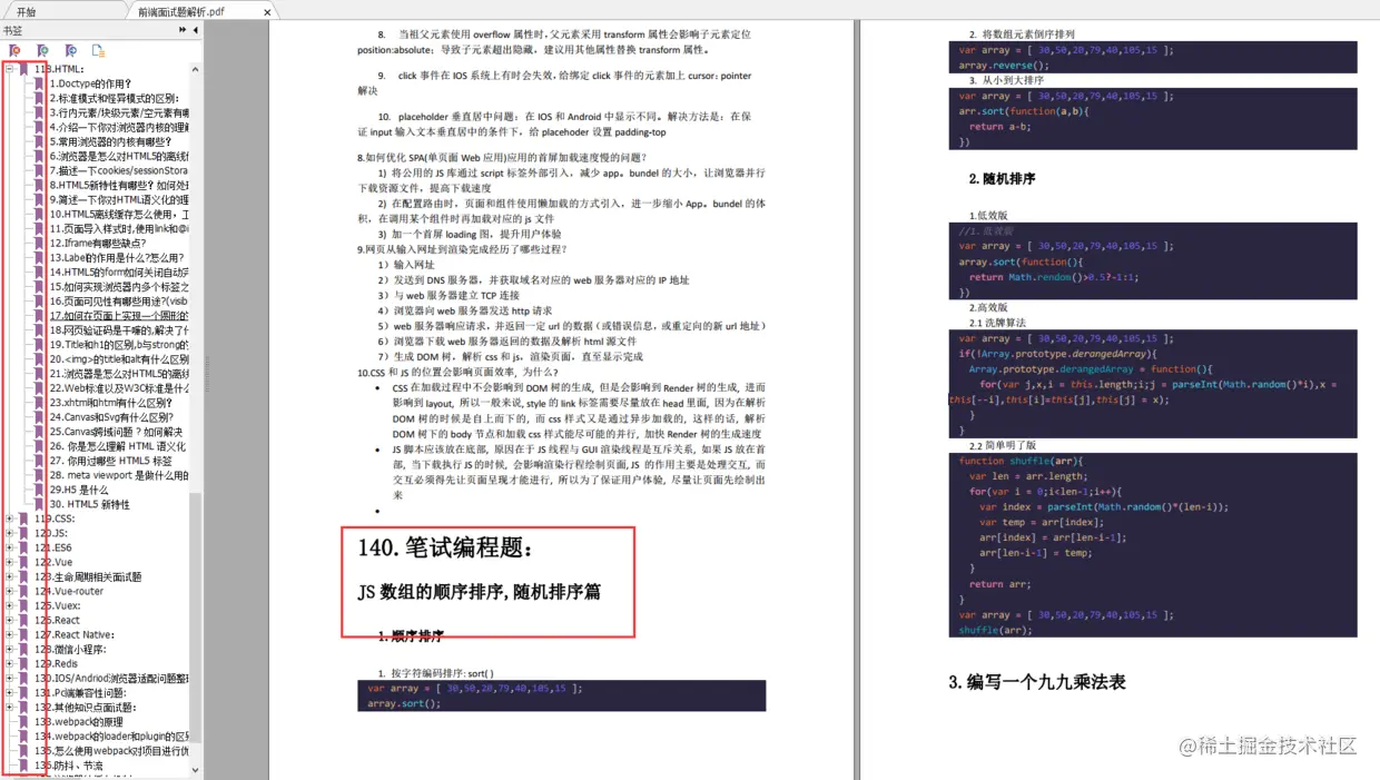 文章中出现的面试题还没有看过瘾的可以【点击这里】免费获取完整版前端面试题解析PDF哦!