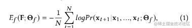 其中 表示前向预测模型中的模型参数,而 是 LSTM 模型计算的,表示基于之前的输入来预测得到 的概率。