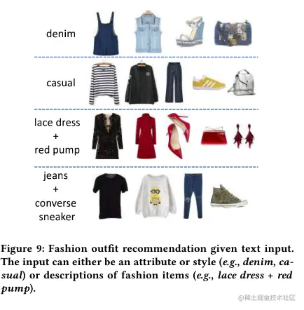- 根据多种形式的输入,比如文本或者一件衣服图片,生成一套搭配;