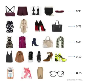 对于搭配匹配性预测,一些预测的例子如下所示: