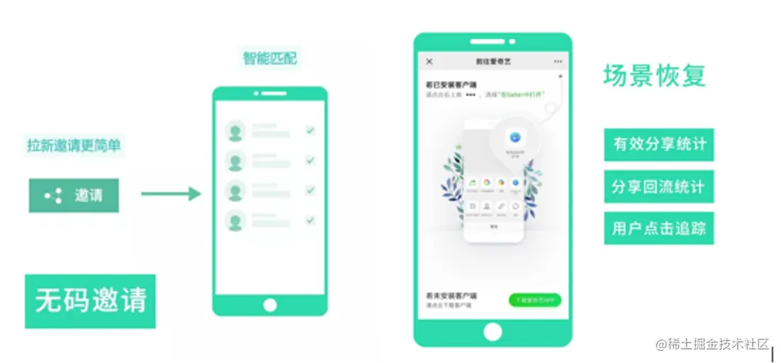 针对未安装App的新用户, 当接入使用【ShareSDK】后,新用户下载App首次打开后,也能实现场景恢复至邀请人分享的页面内容。