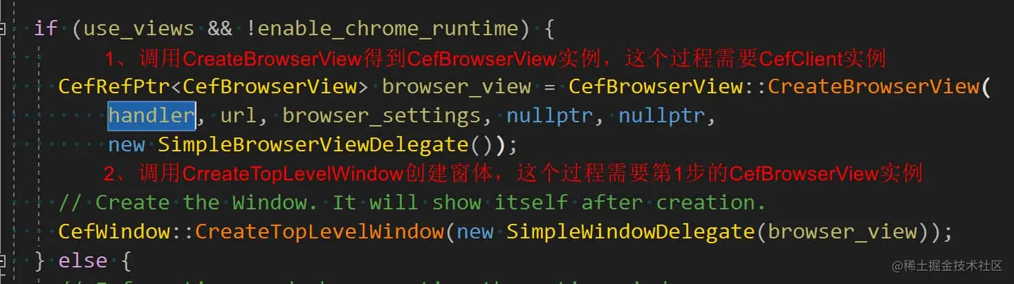 - 首先是调用CefBrowserView::CreateBrowserView得到CefBrowserView实例,这个过程会把CefClient实例和View对象通过API绑定。