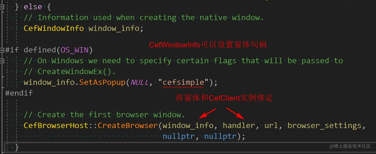 - 调用CefBrowserHost::CreateBrowser将对应窗体句柄的窗体和CefClient绑定起来