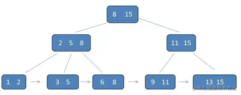 优点:B+ 树的信息全部存放在叶子节点中,非叶子节点用来做索引,且叶子节点中有一个指针指向下一个叶子节点,这样做的目的是为了提高区间访问的性能。而正式这个特性决定了 B+ 树更适合用来存储外部数据。