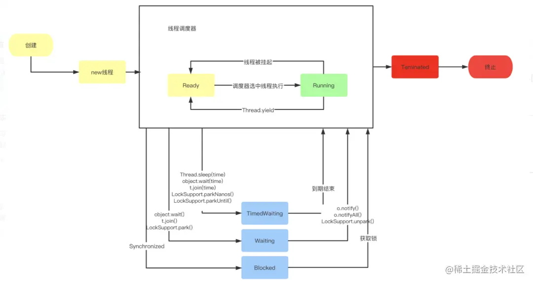 线程最为重要也是最为麻烦的就是线程间的交互通信过程,下图是线程状态的变化过程: