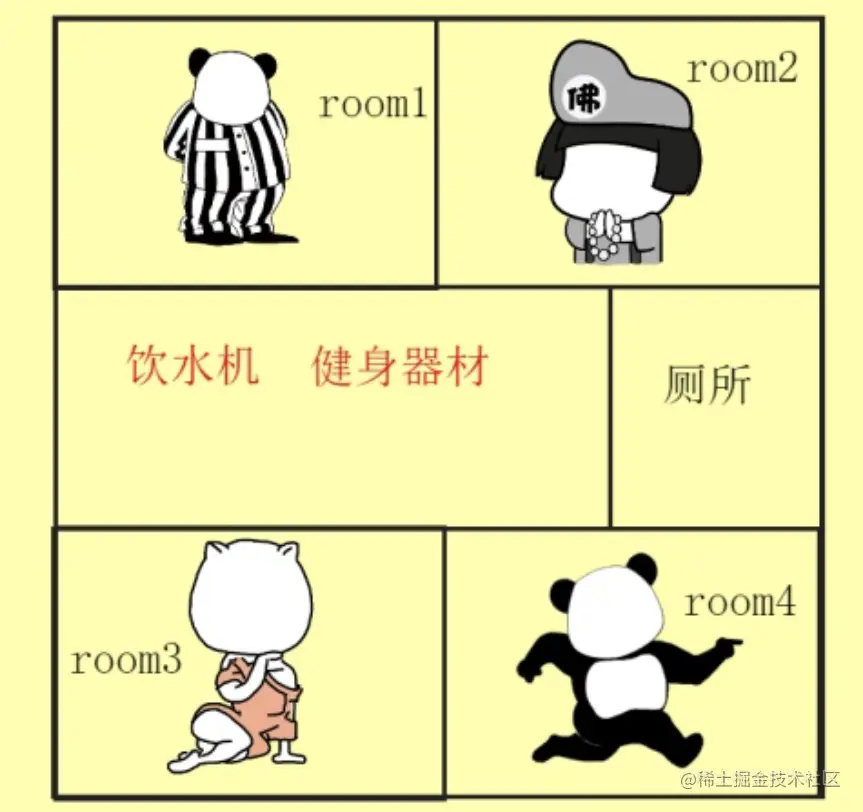 在多线程编程中有”锁”的概念,在你的房子里面也有锁。如果你的老婆在上厕所并锁上门,她就是在独享这个“房子(进程)”里面的公共资源“卫生间”,如果你的家里只有这一个卫生间,你作为另外一个线程就只能先等待。