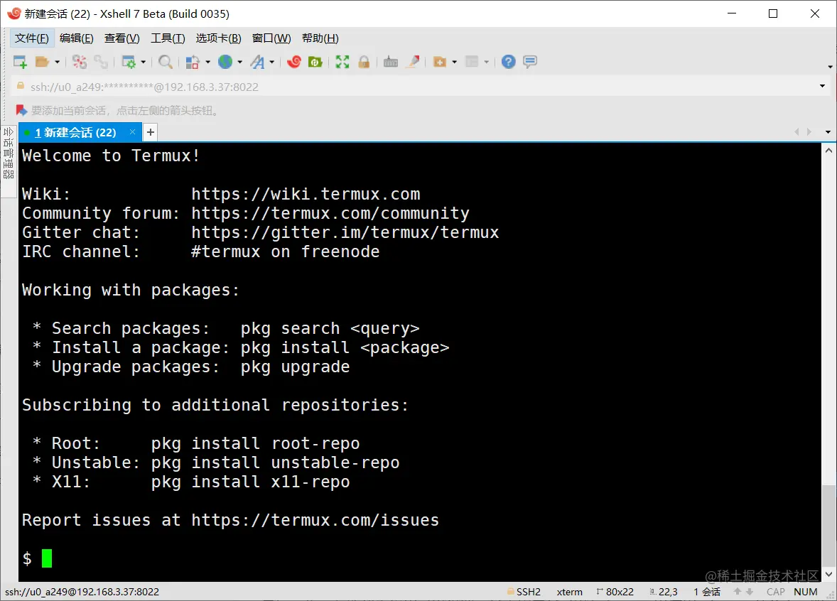 三、xshell连接手机终端