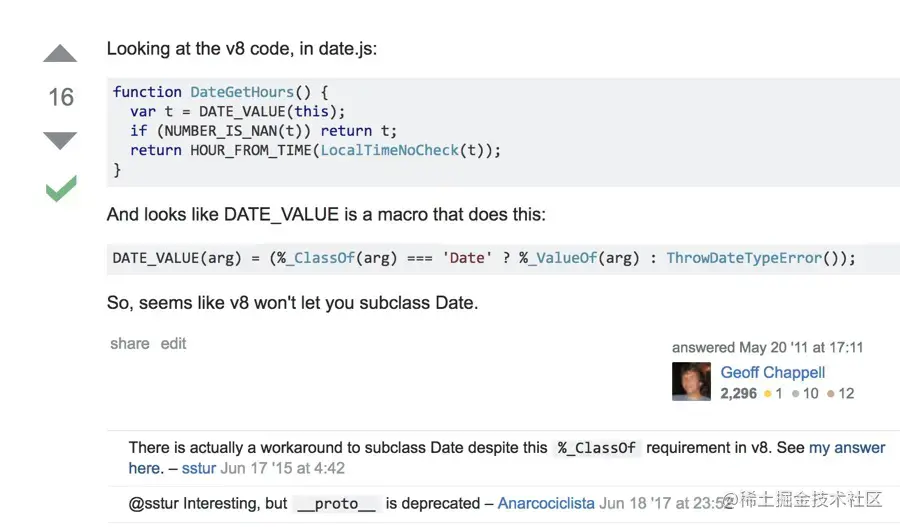 这里很好的解决了一个问题,你会发现在之前 ES5 的处理中,我们没有处理继承内建对象,比如:Array,Date等。这是因为之前都是调用父类构造函数并使用 call 改变 this 指向子类实例实现的(Parent.call(this, foo))。但是对于原生构造函数来说,会有几种情况: