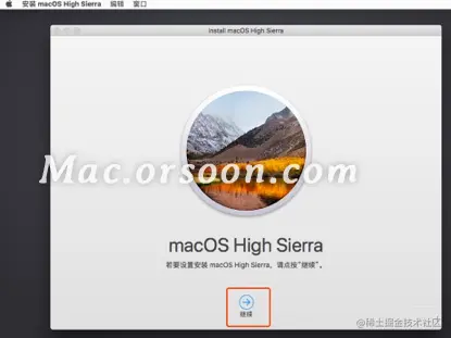 退出之后,我们点击“安装macOS”,看一下能否进下一步。