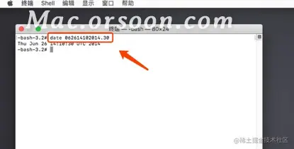 进入终端后,我们输入以下命令行“date 062614102014.30”,注意,date后面是空格,输完之后按回车确定。(其他版本日期参照教程结尾)
