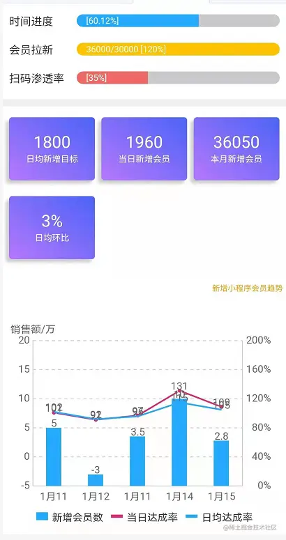 今天小编推荐一套精美的数据报表模板,里面高度封装日历组件、表格组件、排行榜组件、条形进度条组件、文本块组件以及ucharts的多个图表组件,用户只需要按照虚拟数据的格式,传特定数据即可方便、快捷地打造出属于自己的报表页面。