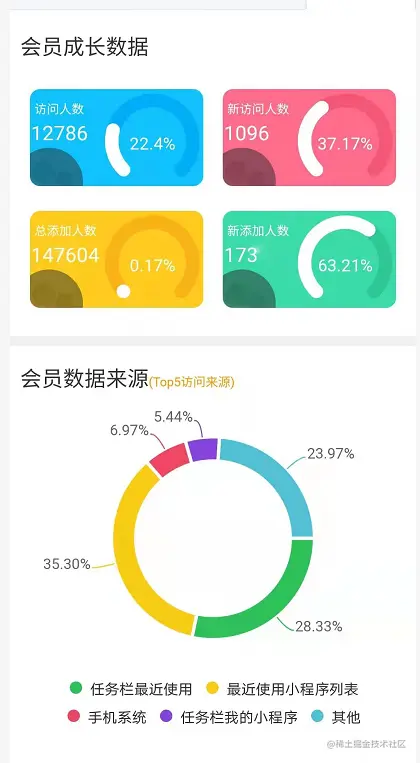 项目采用全端兼容的uCharts图表等插件完成的云端数据报表中心,用户只需要专注数据业务,即可打造出属于自己的数据报表中心,组件页面精美,使用起来灵活便捷,不仅如此,搭配admin权限系统实现权限分配查看页面!